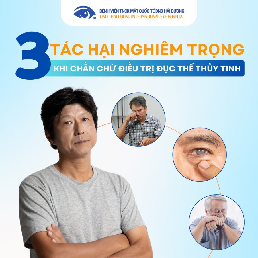 Khi tình trạng đục thể thủy tinh tiến triển nặng, cấu trúc trong mắt bị biến đổi làm tăng nguy cơ mắc các bệnh lý như viêm màng bồ đào, tăng nhãn áp thứ phát hoặc lệch thủy tinh thể. Những biến chứng này không chỉ gây đau nhức mà còn khiến quá trình điều trị sau này trở nên phức tạp và tốn kém hơn.