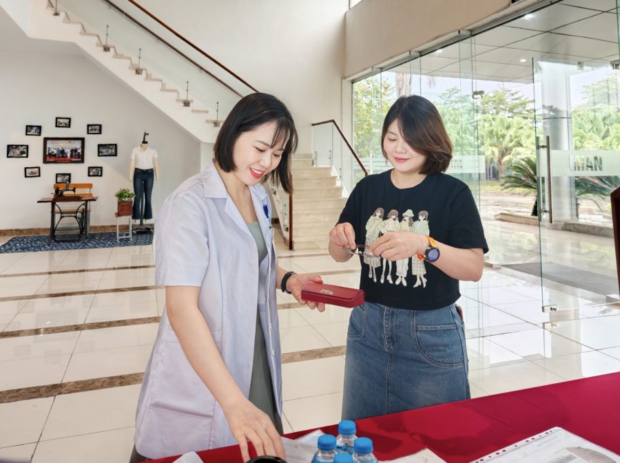 Sau buổi khám mắt được tổ chức vào ngày 05/12/2025, đến ngày 20/12/2025, Bệnh viện Mắt Quốc tế DND Hải Dương tiến hành trao trả kết quả khám và kính mắt cho cán bộ, công nhân Công ty May Minh Anh, Khoái Châu.