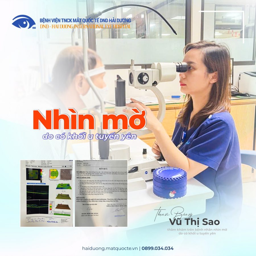 Khối u tuyến yên nằm ngay vị trí gần giao thoa thị giác, nên khi phát triển có thể chèn ép dây thần kinh thị giác, khiến người bệnh nhìn mờ, giảm thị lực, thậm chí mất thị lực vĩnh viễn nếu không phát hiện sớm.