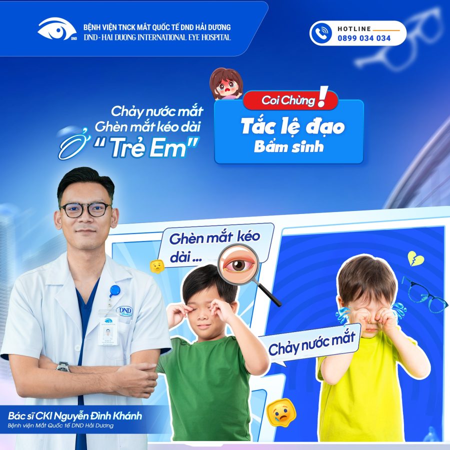 Nếu trẻ có biểu hiện chảy nước mắt sống, nhiều ghèn, mắt ướt kéo dài, phụ huynh nên đưa bé đến Bệnh viện Mắt Quốc tế DND Hải Dương để được thăm khám sớm và tư vấn hướng xử trí phù hợp.