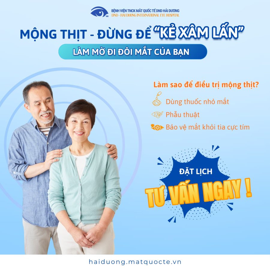 Phẫu thuật mộng thịt: Là giải pháp triệt để khi mộng lan lên giác mạc hoặc ảnh hưởng đến thị lực, thẩm mỹ. Kỹ thuật hiện đại giúp loại bỏ mô mộng an toàn, hạn chế tái phát và phục hồi nhanh chóng.