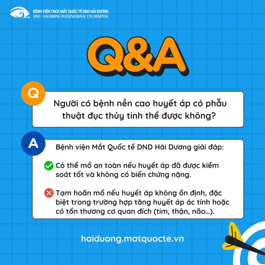 Q&A: Người có bệnh nền cao huyết áp có phẫu thuật đục thủy tinh thể được không?