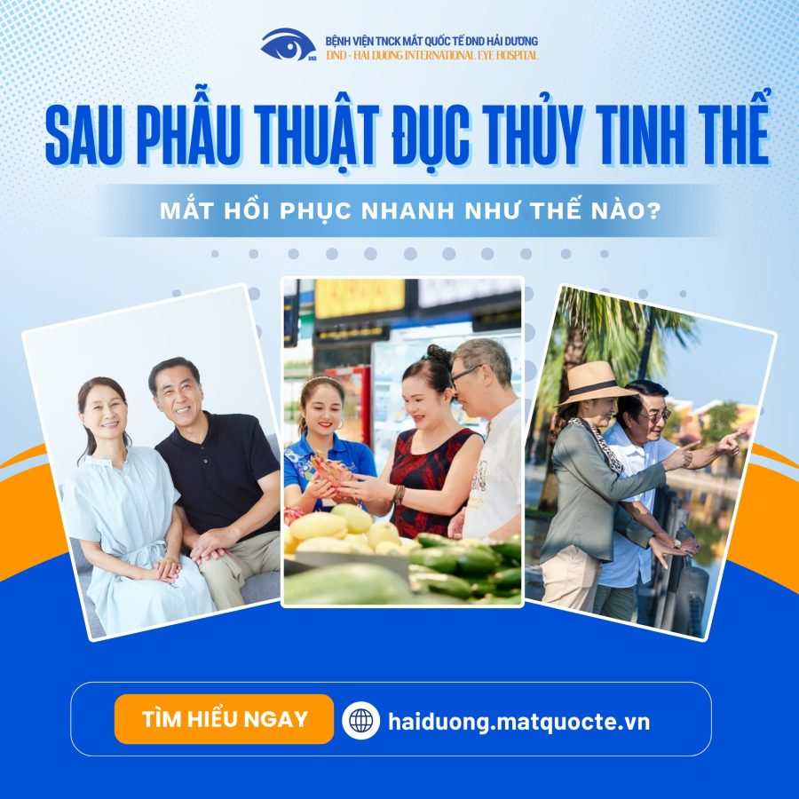 Tại Bệnh viện Mắt Quốc tế DND Hải Dương, phẫu thuật đục thủy tinh thể được thực hiện bằng công nghệ Phaco hiện đại, kết hợp quy trình thăm khám theo dõi chặt chẽ và sự đồng hành tận tâm của đội ngũ bác sĩ chuyên khoa giàu kinh nghiệm.
